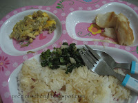 I returned from work and she wanted me to feed her dinner so I did just that and decided that she should try some "chai xin". This is actually my second attempt and like the previous time, I snipped the vegetables into small bits.